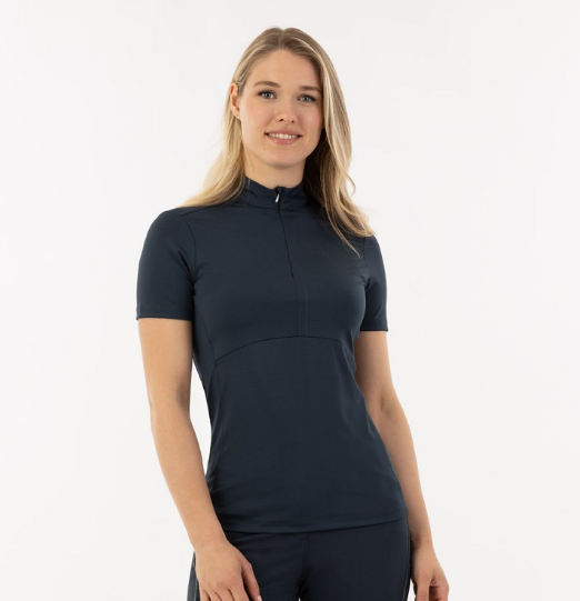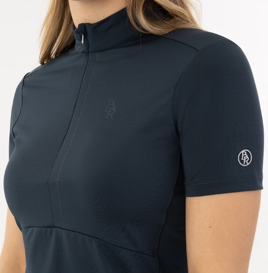 BR Estelle er en virkelig fin og behagelig ridebluse med lynlåslukning foran. Materialet er strækbart og åndbart. En klassisk ridebluse med tone-i-tone logoprint. Meshpaneler i siderne gør denne bluse ekstra sporty og åndbar. Materialet er fremstillet af 85% Polyester og 15% Spandex. Vaskes ved 30 grader.