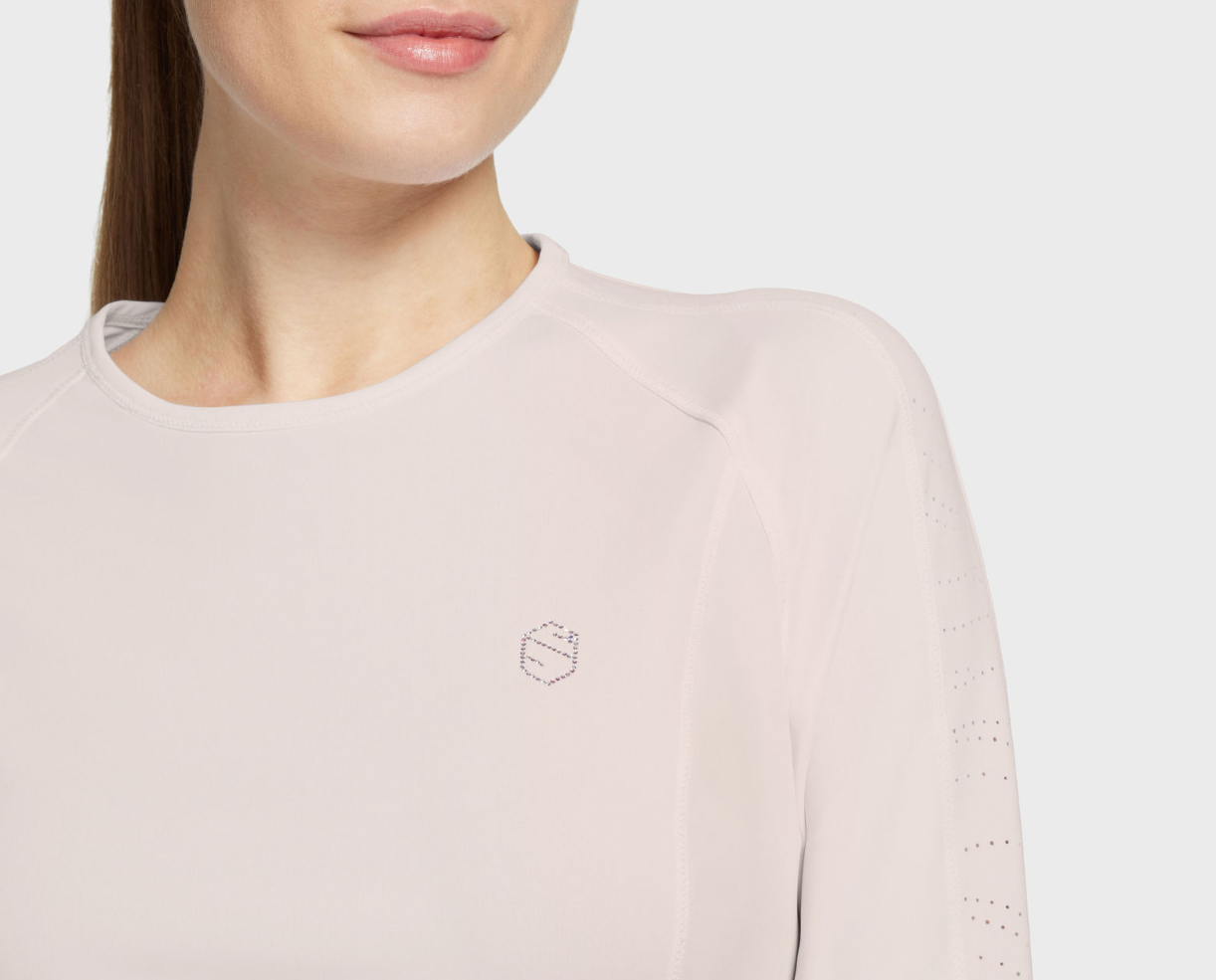 Samshield Evy Air Waves træningsbluse - en lækker funktionsbluse der kan bruges til al træning. Super smart og feminin med perforinger i ryg og ærmer, som giver ekstra åndbarhed. Kan bruges året rundt, da den fungerer godt også en en lag-på-lag påklædning.