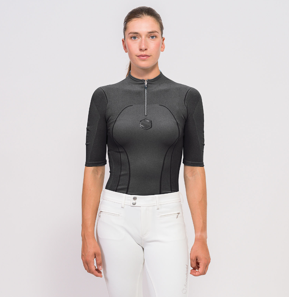 Samshield Zelda er en genial træningsbluse i et strækbart og behageligt materiale. Zelda seamless er åndbar og uden irriterende sømme og med et ultra sporty look. Den er virkelig behagelig at have på og praktisk med lynlåsåbning i halsen. Under lynlås ses det fine diskrete Samshield logo med enkelte swarovski sten. Denne bluse er en del af Samshields SS24 kollektion og derfor er der begrænset antal.