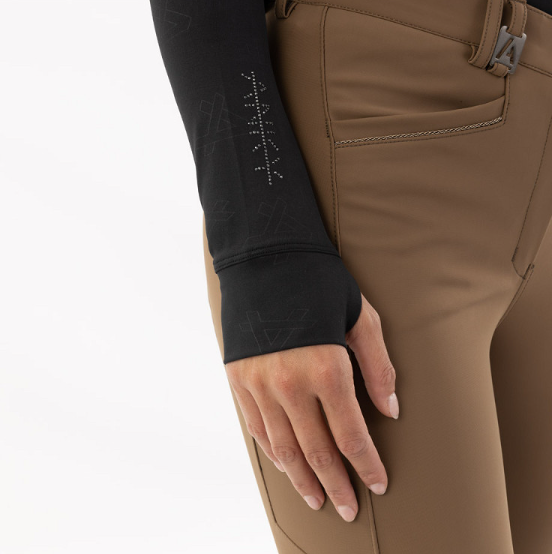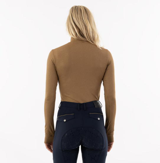 Anky Mockneck langærmet ridebluse med fine detaljer. Denne ridebluse er i et lunt og åndbart materiale med masser af stretch. Materialet er anti-bakterielt. LIlle logo med sten. Den sorte bluse har A-logo i det sorte materiale. Den bronzefarvede bluse er med delikat glittertråd.