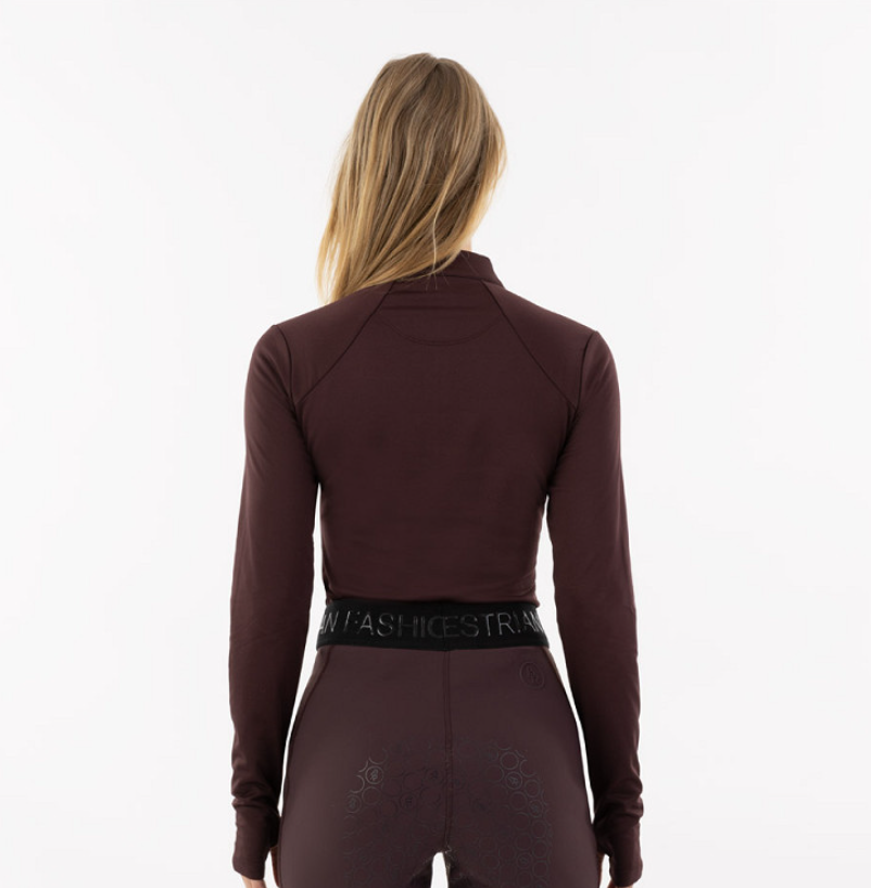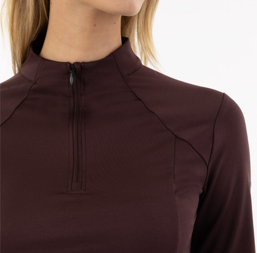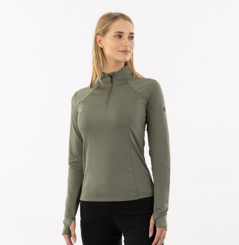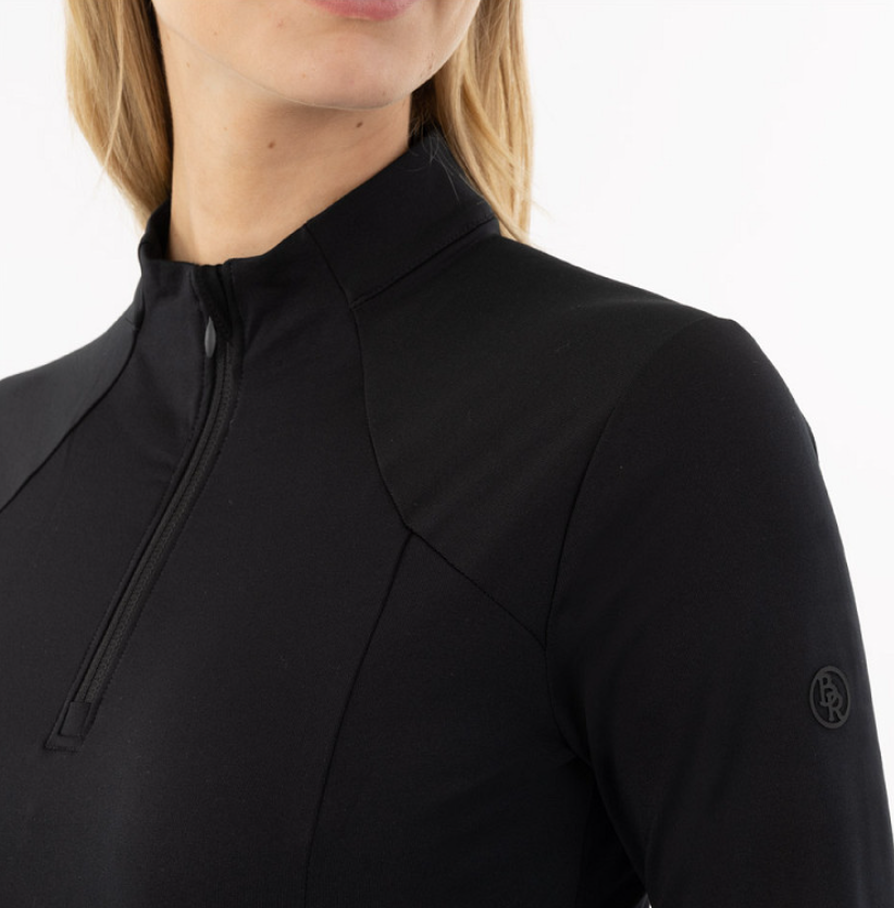 BR Franka er en lækker ridebluse med 1/4 lynlås. Her får du en virkelig lækker ridebluse til at bruge som baselayer eller for sig selv. Materialet er hurtigtørrende og behageligt. Lynlås ved krave gør det muligt at åbne lidt op hvis man får det varmt og modsat, så kan man lyne op og få en behagelig lune om halsen. Ærmelængde med huller til tommelfinger er virkelig en lækker detalje til de kolde dage.