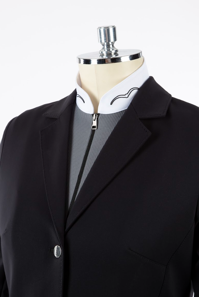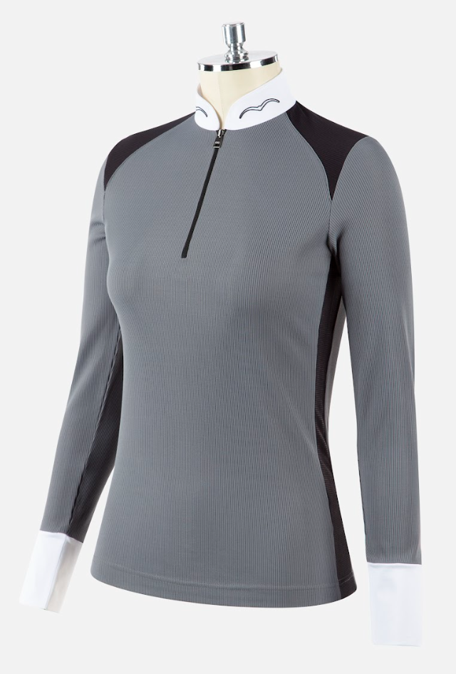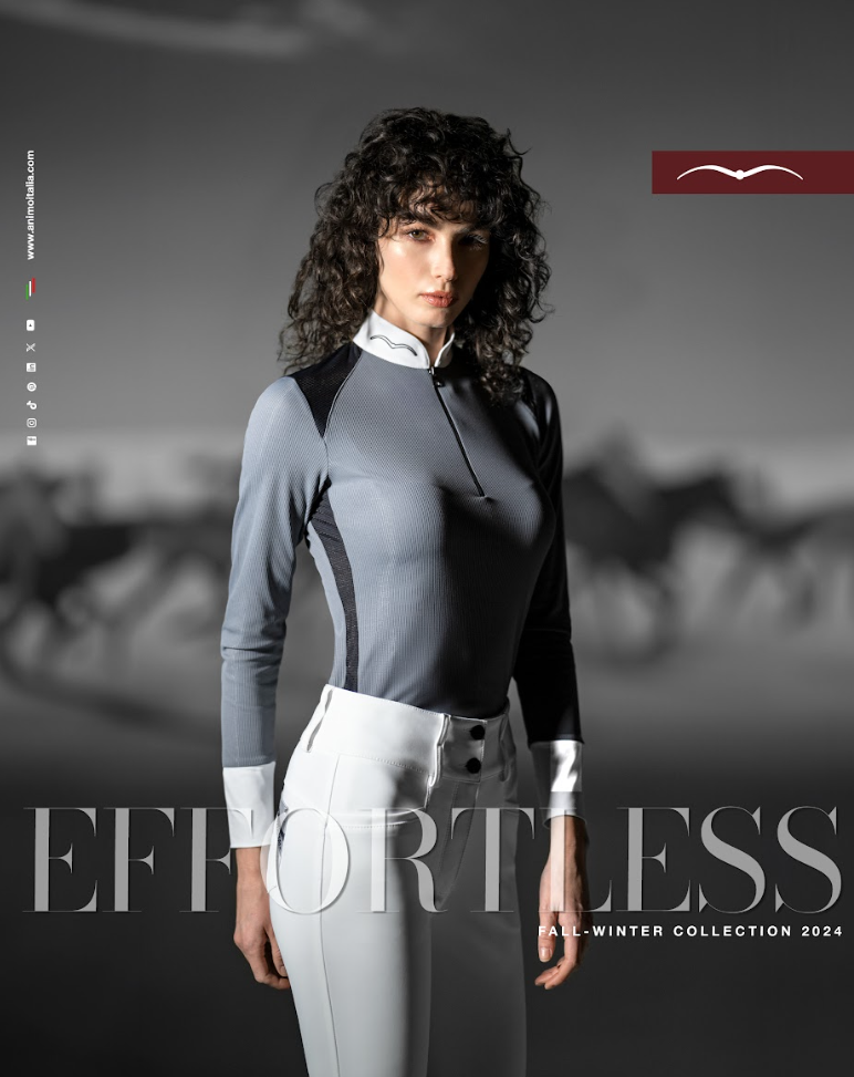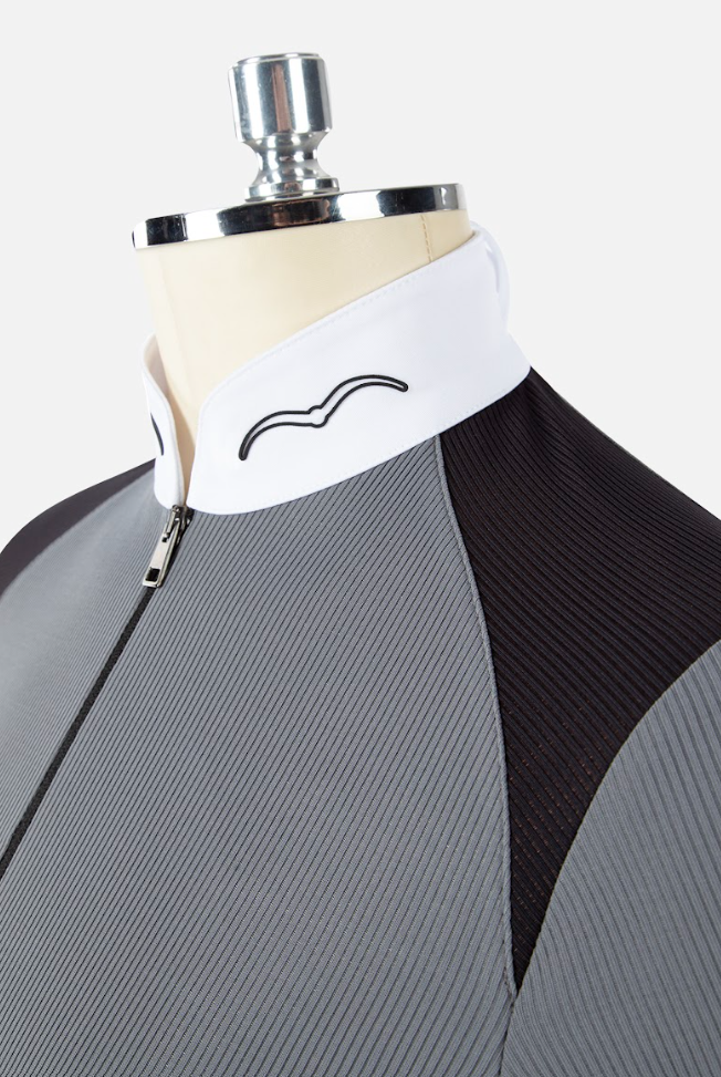 Animo Baster ridebluse til både stævne og hverdagsbrug. Italienske Animo er mestre i at lave velsiddende og behagelige ridebluser. Denne er i et skønt blødt funktionsmateriale med hvid krave og hvidt elastisk materiale ved ærmeudskæringen. Til den aktive rytter som gerne vil se sporty og smart ud til træning - eller til brug ved ridestævnet, da blusen har hvid krave. Kombinationen af grå og sort er stilfuld. Stoffet er diskret glitrende.