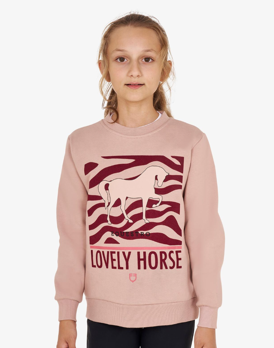 Super lækker sweatshirt fra Equestro med eksklusive detaljer og lækker blød børstet inderside. En sweatshirt der oser af kærlighed til hestene. Motiv er en kombi af velouratig 3D print og gummi print. Equestro er et italiensk mærke så størrelserne er lidt små i det. Kvaliteten er i top og prisen fornuftig. Denne sweatshirt er både i børne- og voksnestørrelser! Og den kan bruges til ridning og anden træning eller bare som en lækker bluse til hverdag.