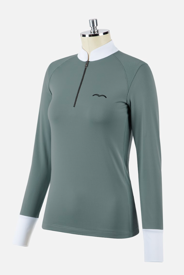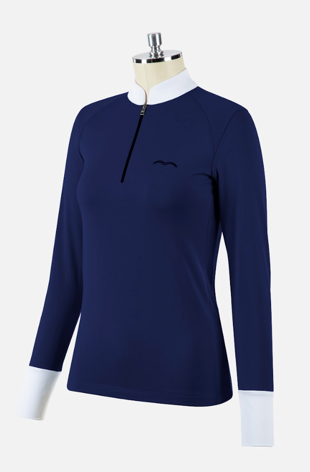 Animo Bowling ridebluse er fremstillet i et af de mest populære materiale, som Animo arbejder i. Virkelig behagelig og velsiddende, er denne bluse, og selvom den er med hvid krave og hvide ærmekanter, så vil den nok for mange blive en yndlingsbluse også til hverdagsbrug for eksempel hvis man til undervisning gerne vil se lidt ekstra stilfuld ud. Animos bluser er virkelig begagelige og af super kvalitet.