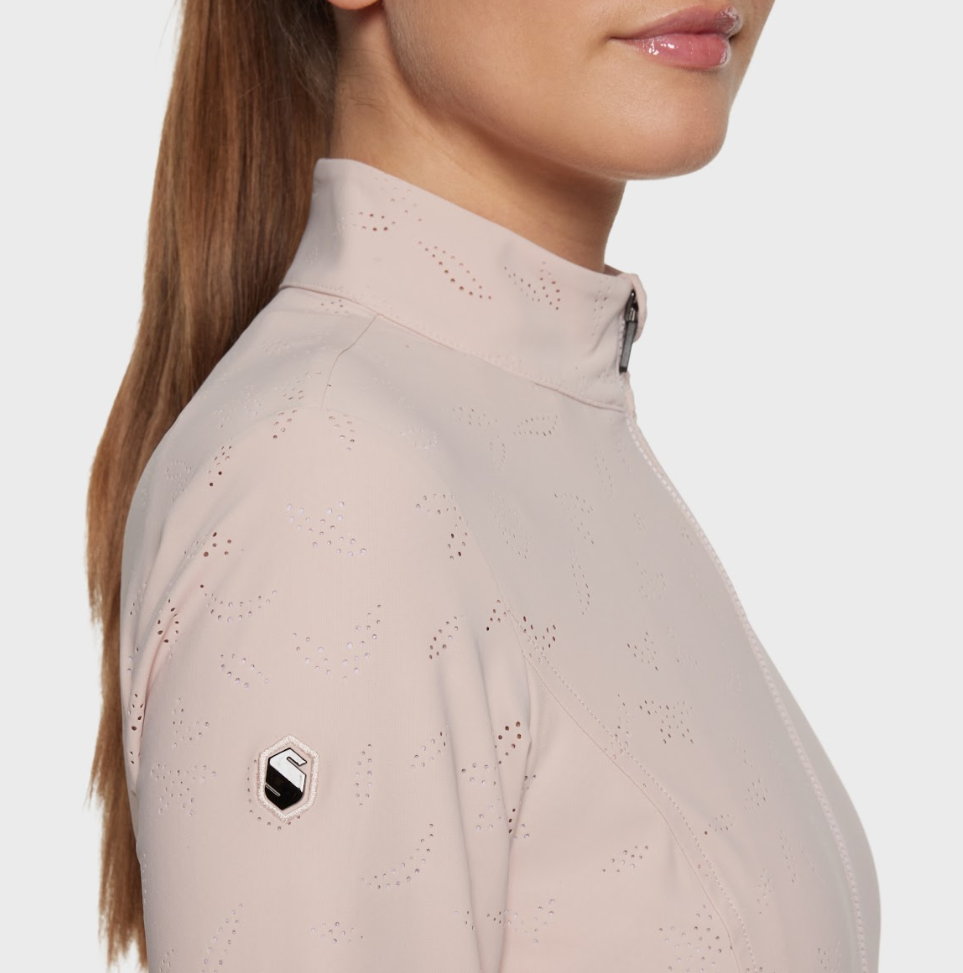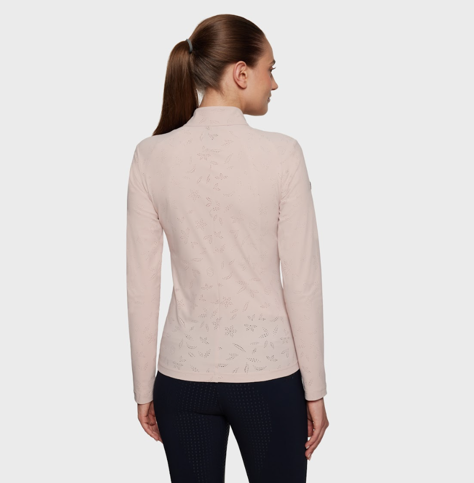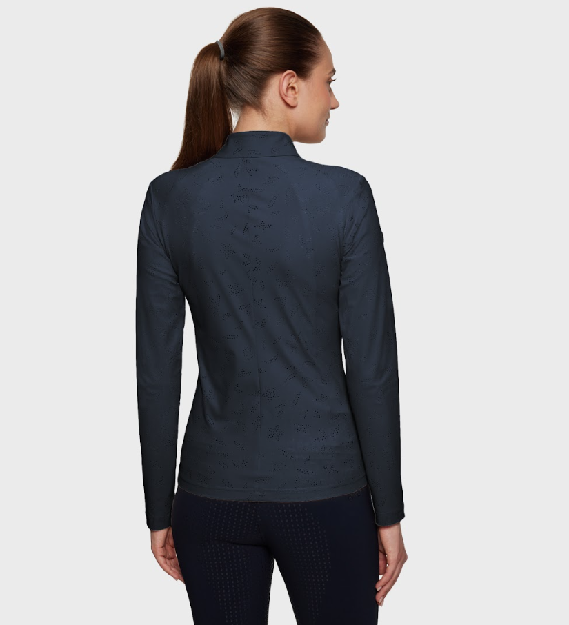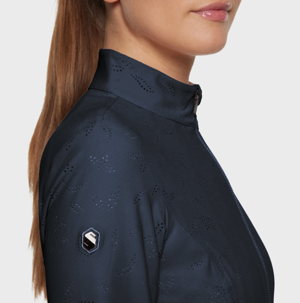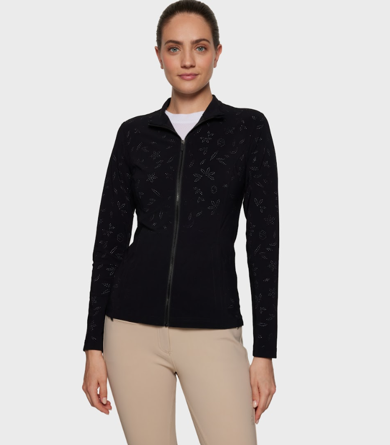 Samshield Hannah er en sporty træningsbluse med lynlås. Den er åndbar og kan bruges til alle former for træning- ridning, løb og gåture. Det er en stilfuld bluse som kan fungere som en let jakke eller cardigan til hverdag. Samshields beklædning er af den bedste kvalitet.