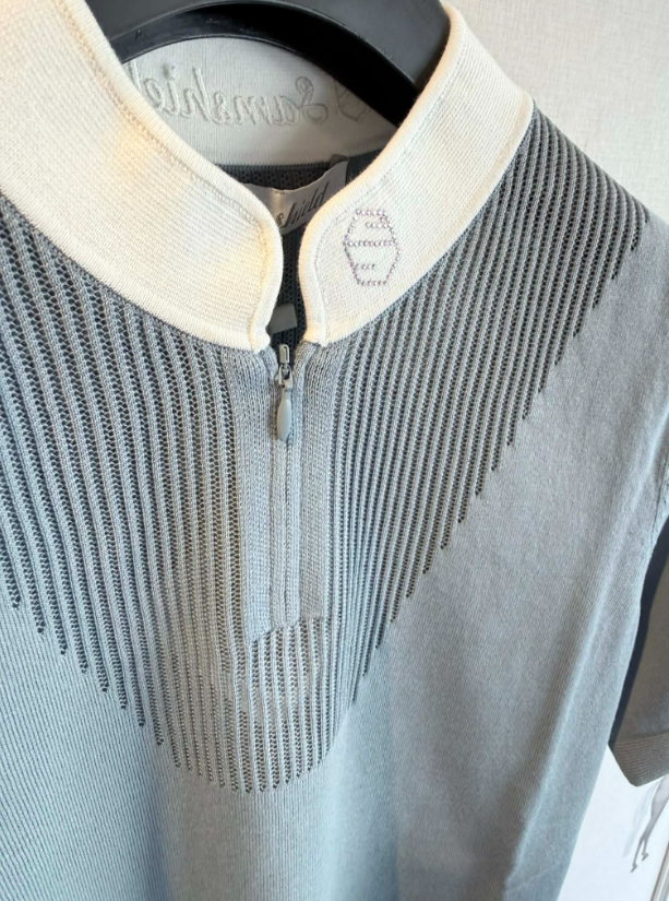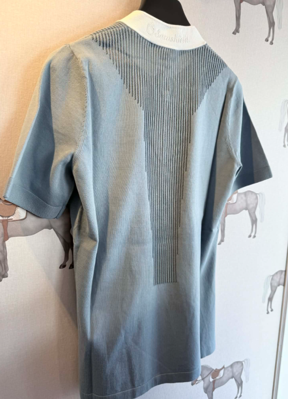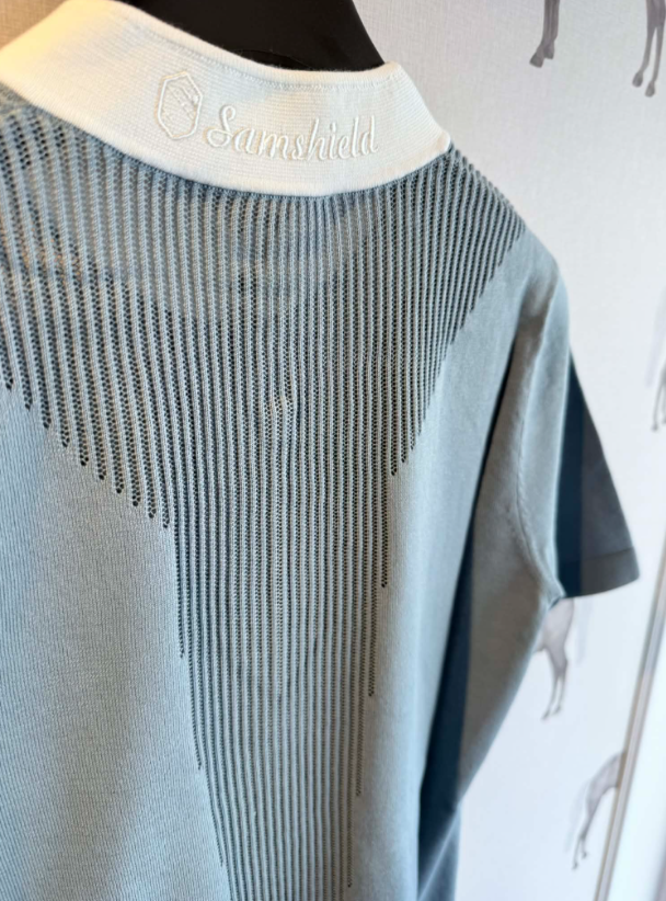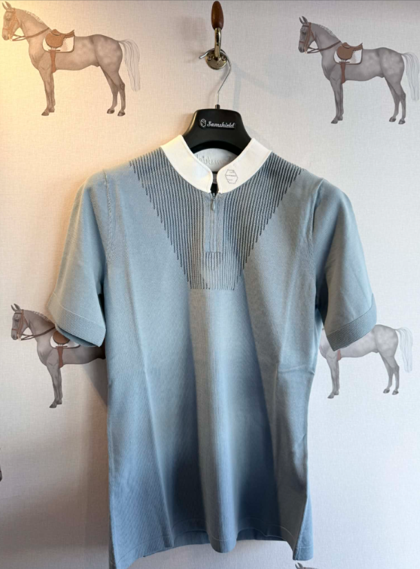 Samshield Zoe blusen er med hvid krave, så du kan bruge den til stævner men også sagtens nyde den i hverdagen. Samshield Zoe er en eksklusiv og stilren ridebluse til dig som gerne vil have noget der er virkelig lækkert at have på samtidig med at det er sporty og elegant. Blusen er fremstillet af et bomulsmateriale i en let strikkvalitet helt uden at kradse. Blusen er med perforeringer som både øger det sporty look samt åndbarheden. Kraven er hvid og med Samshield Swarovski blazon foran og broderet hvidt logo på kraven bagpå.