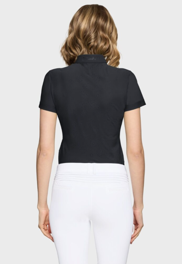 Samshield Bella Crystal Ferna er en limited edition træningspolo med det nye Ferna logo ved brystet samt perforeringer i ryggen som giver ekstra åndbarhed. Broderet Samshield logo i nakken på kraven. Den er super funktionel og teknisk og med lidt ekstra elegant udsmykning. Begrænset antal.
