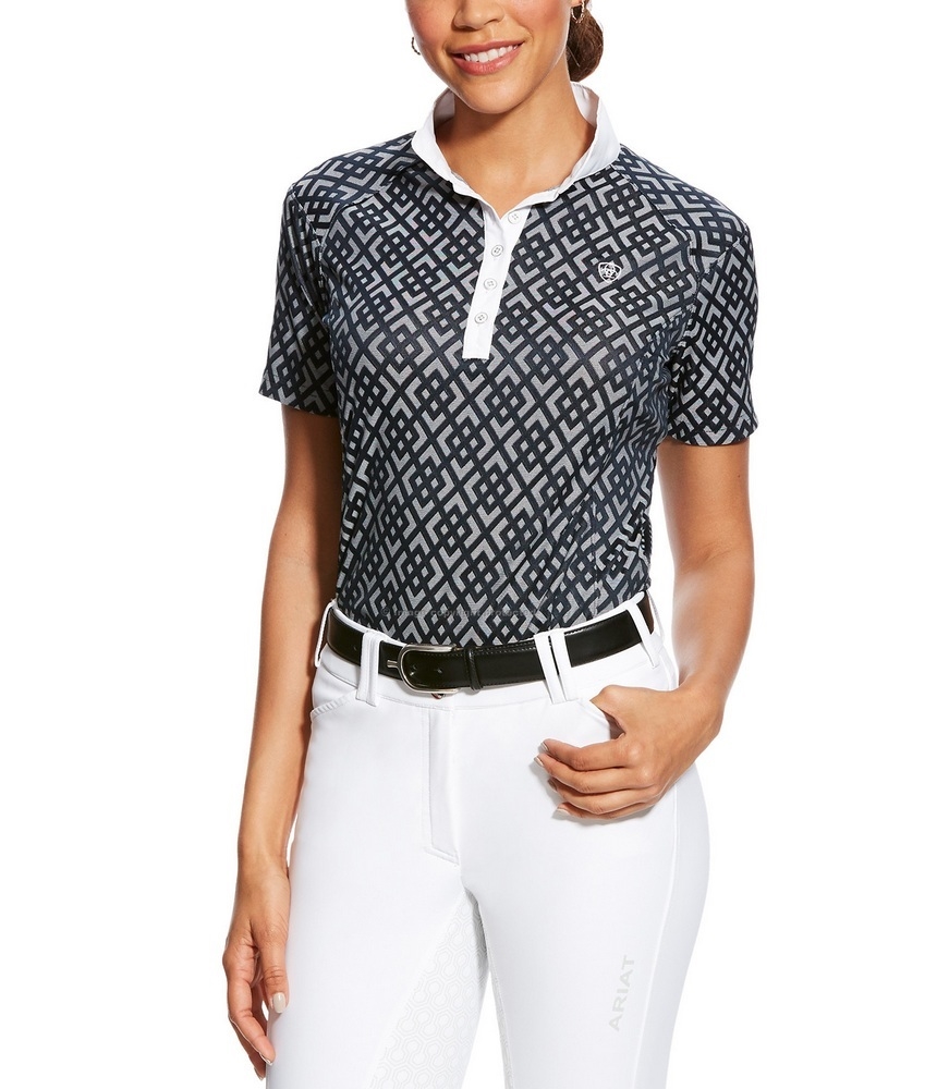 Ariat Showstopper showshirt til damer i nyt print som er virkelig flot og moderigtigt. Ariat Showstopper i denne farve, Darkest Sapphire, er en meget lækkert bluse som kan bruges både som stævnebluse men også i hverdag. Ariat Showstopper er i lækkert funktionelt materiale og moderne mønster, Darkest Sapphire, i mørk navy og nu er den også kommet i den lyse som er mindst lige så fin!