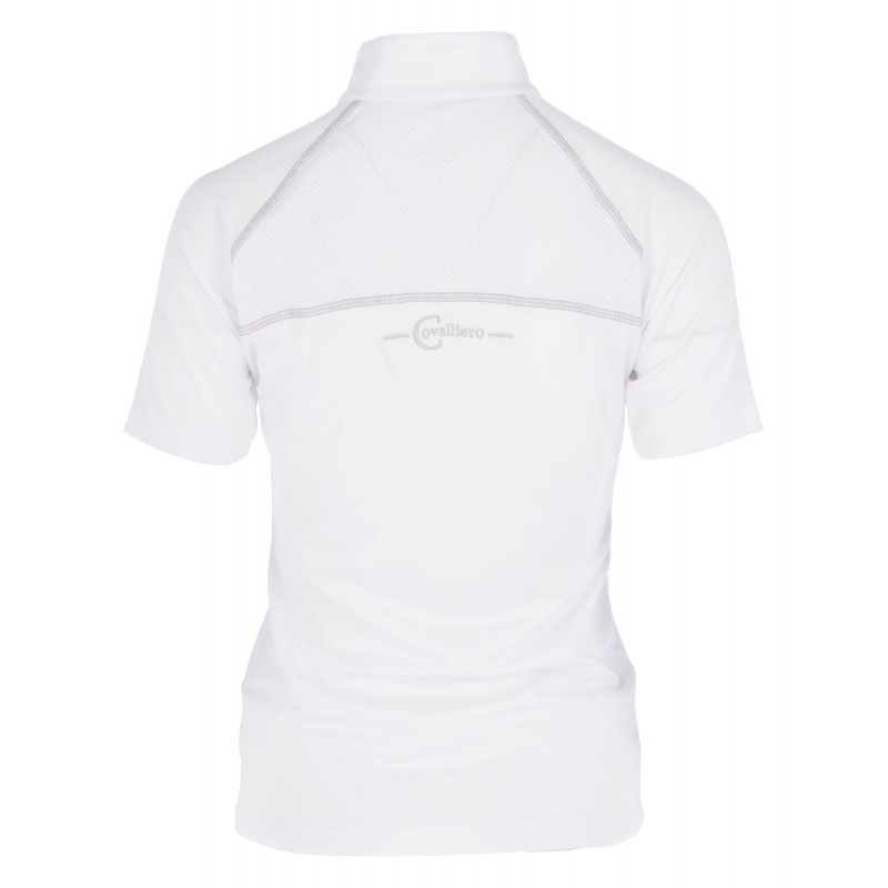 Covalliero Valentina stævneblusen er en sporty stævnebluse i teknologisk materiale. Den er både sporty og feminin men samtidig en bluse som er yderst behagelig, åndbar, svedtransporterende og velsiddende grundet 4-vejs stretch og mesh på den øverste del af ryggen. Materialet er hurtigt tørrende. Mesh er et yderst åndbart materile som bidrager til Valentina blusens åndbarhed og komfort.