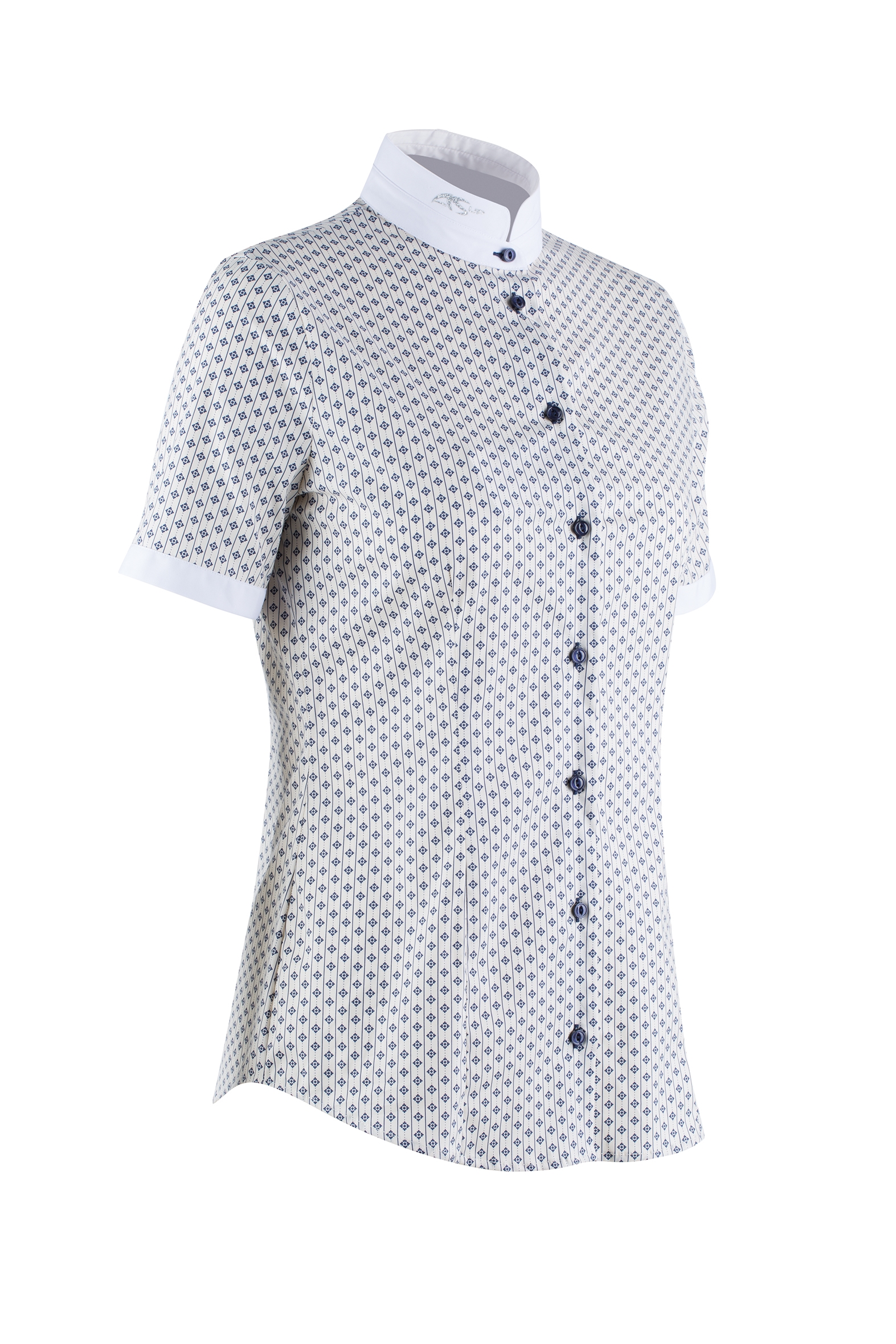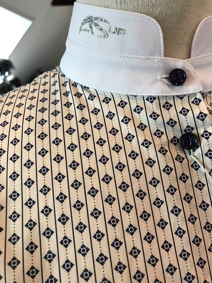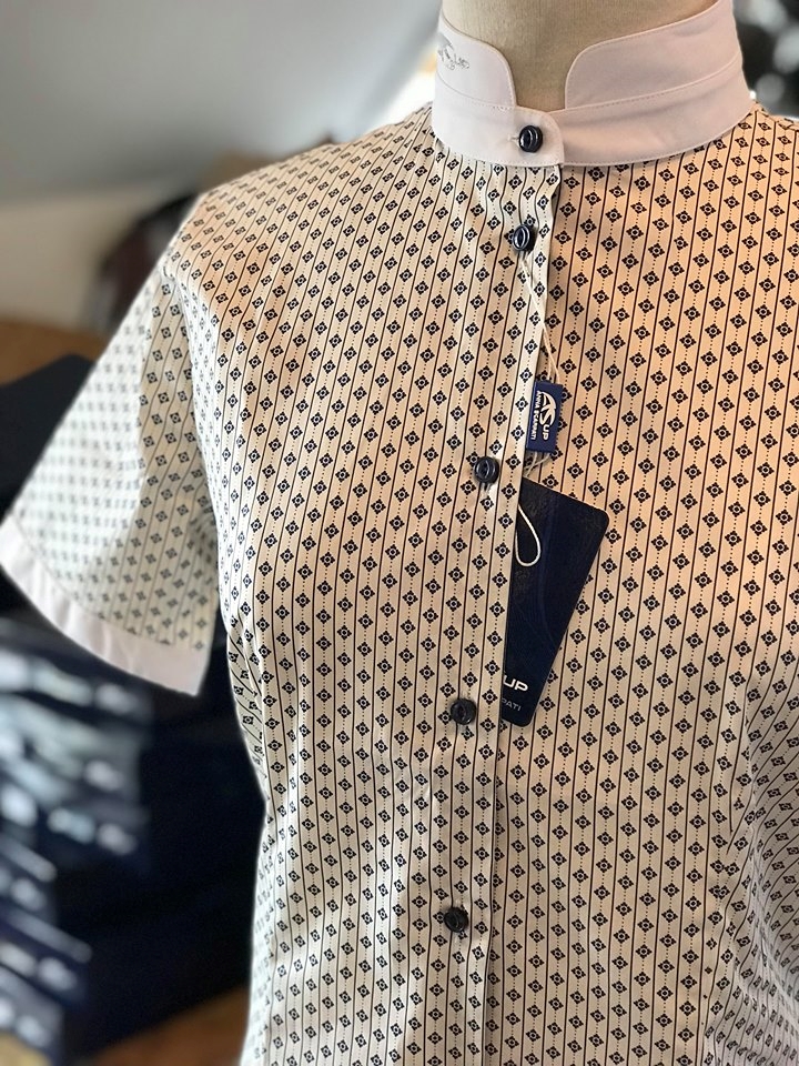 Anna Scarpati Elia competition shirt er en ultra klassisk kortærmet ridebluse med print. Der er to forskellige farver at vælge imellem (version A og version B). Anna Scarpati Elia har flot pasform og er i et lækkert blødt materiale. Selvom den ligner en skjorte behøver den ikke at blive strøget, og materialet lever op til den aktive rytters krav om funktionalitet. Anna Scarpatis ASUP logo er i glitter på kraven. Denne bluse kan uden problemer anvendes både i stævnesammenhænge men også i hverdagen til rytteren der gerne vil skille sig ud og se klassisk ud. Match den til navy, grå, bordeaux,grøn sort, beige eller jeans - den kan gå til det meste. Størrelserne er italienske og lidt små i det.