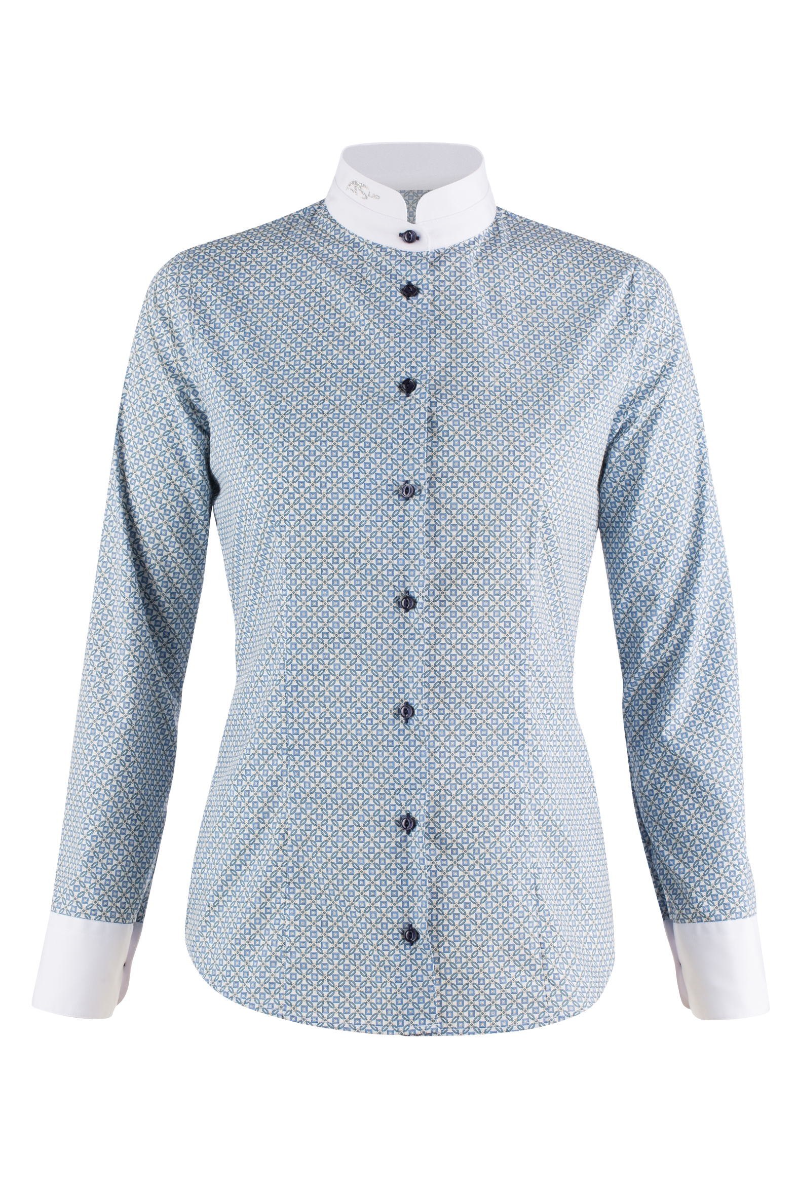 Anna Scarpati Enea SS19 competition shirt er en ultra klassisk langærmet ridebluse med print. Der er to forskellige farver at vælge imellem (version A og version B). Anna Scarpati Elia har flot pasform og er i et lækkert blødt materiale. Selvom den ligner en skjorte behøver den ikke at blive strøget, og materialet lever op til den aktive rytters krav om funktionalitet. Anna Scarpatis ASUP logo er i glitter på kraven. Denne bluse kan uden problemer anvendes både i stævnesammenhænge men også i hverdagen til rytteren der gerne vil skille sig ud og se klassisk ud. Match den til navy, grå, bordeaux,grøn sort, beige eller jeans - den kan gå til det meste. Størrelserne er italienske og lidt små i det.