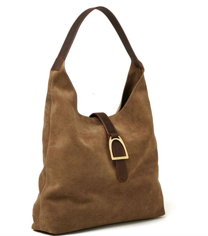 ADAMSBRO ´s Tote bag med skulderstrop er den ultimative forkælelse til dig som gerne vil have en stilfuld taske med lidt plads i. Tasken er i fløjlsblød camel brun ruskind. Skulderstrop i lækker blød læder. Spændet på læderrem er en smukt fremstillet stigbøjle.Forkæl en du holder af - eller dig selv- med denne super lækre taske fra svenske Adamsbro.