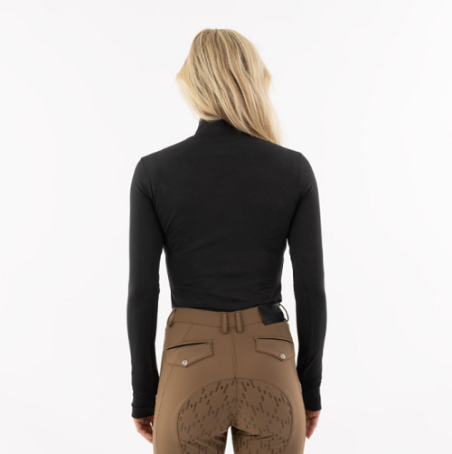Anky Mockneck langærmet ridebluse med fine detaljer. Denne ridebluse er i et lunt og åndbart materiale med masser af stretch. Materialet er anti-bakterielt. LIlle logo med sten. Den sorte bluse har A-logo i det sorte materiale. Den bronzefarvede bluse er med delikat glittertråd.