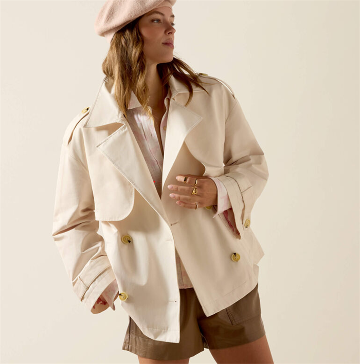 Staunton jakken er kommet i en ny farve Vanilla Ice! Skal du på galopbanen, til rytterfest eller vil du bare gerne have en ny jakke som kan bruges på utallige måder i garderoben? Totalt moderigtig og klassisk trench coat med A-facon. Lidt kort i det men rummelig og med brede ærmer. En jakke som er elegant og sporty på samme tid og passer til alle aldre! En skøn detalje er det fine inderfor som er med hestemotiv. Lidt stor i størrelsen, da den er rummelig i facon.