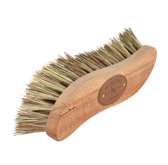 Ergonomisk udformet børste med ryg i træ og børste unionmix, som er en lidt stivere børste. Super god til meget beskidte og pelsede heste eller til brug som skrubbebørste til hovene for eksempel. Bruger du børsten til vask, så lad den stå og tørre, så vandet kan løbe fra.