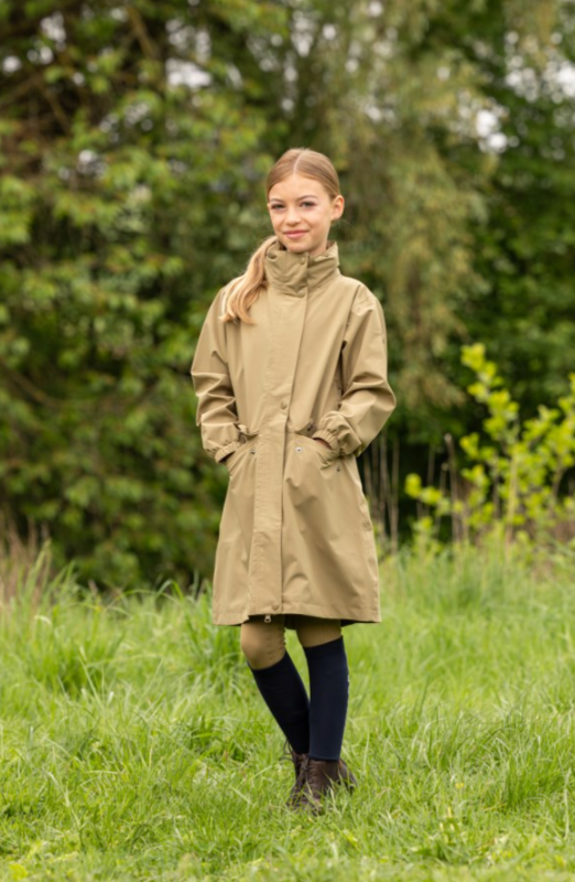 Vandtæt frakke til junior som elsker udelivet uanset vejret! Frakken her er vandtæt med et vandsøjletryk på 10.000mm, tapede sømme og god åndbarhed ( 3000 g/m²/24 h). En frakke som holder den unge rytter tør i vådt vejr.