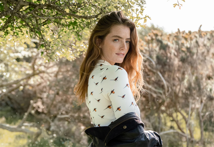 Dubarry Reynolds er en lækker baselayer bluse i et super behageligt materiale.. Blusen er blød og strækbar og med det fineste mønster af fasaner. Super lækker bluse til country style elskere. Den passer fortrinligt til jagtselskaber men kan jo bruges så fint under både strik, vest samt en blazer. Det er en bluse du også sagtens kan bruge til at være aktiv i, da materialet tilbyder stor bevægelsesfrihed. Elegant og feminin i sig selv eller under strik, fleece, vest og lignende.