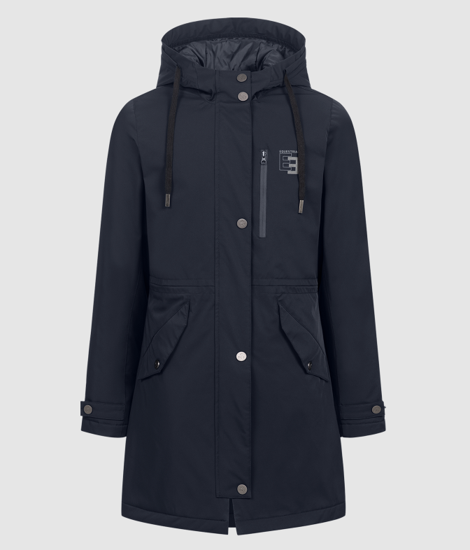 ELT Ava er en dejlig funktionel parka til den unge rytter. ELT Ava er enkel og foret og med en yderside med vandsøjletryk på 5.000mm kan den nemt klare en masse regn. Sømme er tapede og frakken er også åndbar (3000g/m²/24h). Det her er en super frakke til barnet som er meget udendørs eller som nemt fryser, da den er både varm og vandtæt. Hætten er integreret og fastgøres på bagsiden. Der er vandtæt lomme samt to ekstra lommer og så kan taljen justeres. Der kan knappes op bagpå, så man nemt kan ride med ELT Ava parkaen, lige som den har 2-vejs lynlås, hvilket også er et kæmpe plus hvis frakken skal anvendes i sadlen. Et stilrent og simpelt look gør denne parka elegant og funktionel på samme tid. Dejligt med en sådan parka i børnestørrelse!