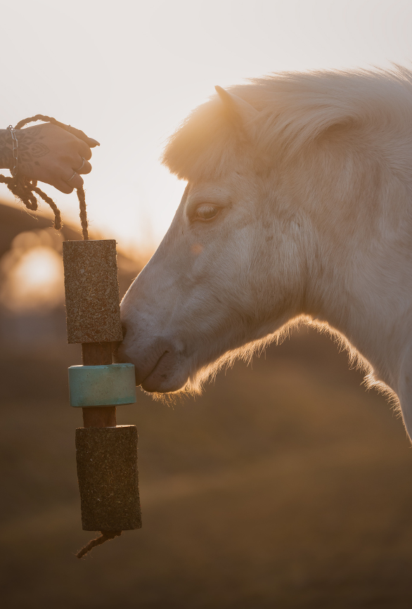 Candy Horse har lavet denne Herbi Horse BREATH snor med træstykker og en slikkesten i midten. Denne er med aromaterapi og ingredienser som undersøtter hestens luftveje og vejrtrækning. Her er blandt andet et unikt sammensat indhold af olier og urter med mint, eucalyptus. Breath er mere end adspredelse - det er også en naturlig måde for din hest at hygge sig på samtidig med at det hjælper dens vejrtrækning.