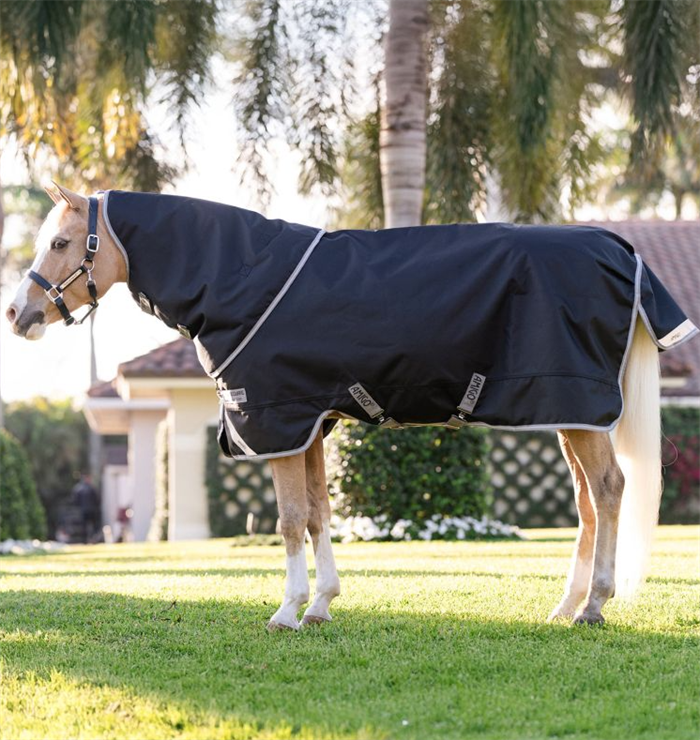 Amigo® 1200D Plus Turnout 50g til PONY - pasformen er derfor tilpasset de små størrelser. Dette er et meget populært let dækken med virkelig stærk yderskal, god komfort og masser af detaljer som bidrager til din ponys bedste dag på folden. Dækkenet er med solidt og vandtæt 1200D polyester yderskal og med 50 gr let og åndbart fyld. Inderforet er et glat og antibakterielt for som er behageligt, anti-statisk og modvirker slid.