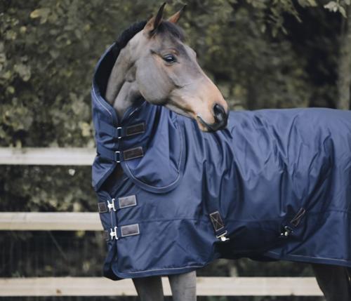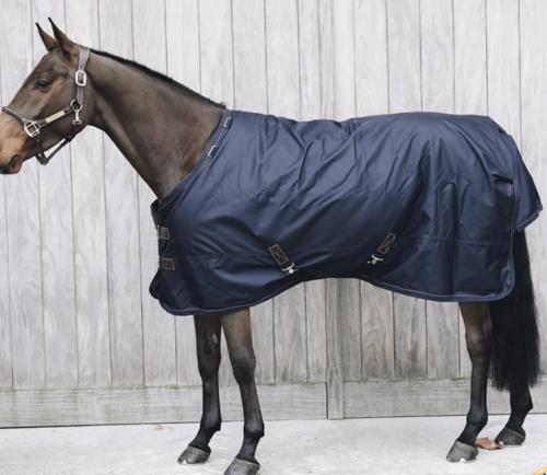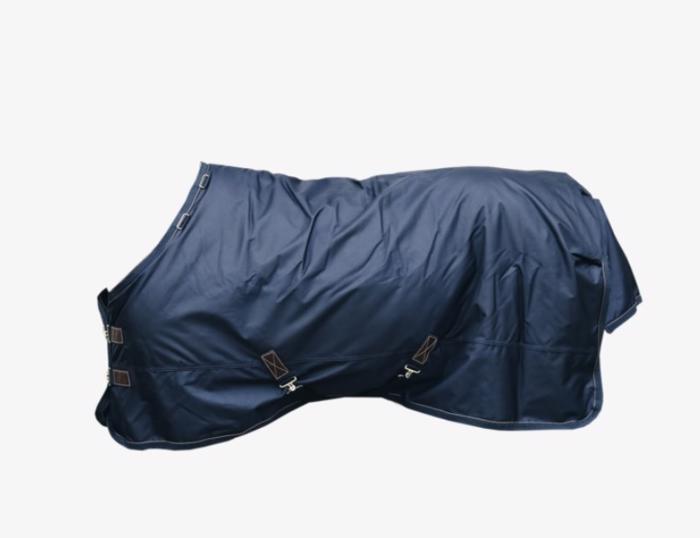 Dette dækken har en flot navy farve der sammen med de brune detaljer med imiteret læder giver et eksklusivt look til dette dækken. Derfor kan dækkenet også sagtens anvendes som stævnedækken, da det er velegnet til stævnestalden som jo ofte er en teltstald, hvor et varmt dækken der er åndbart og vandtæt er optimalt.