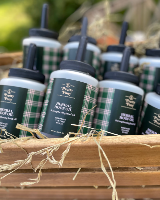 Pretty Pony Herbal hoof oil er en naturlig pleje til hovene, som giver smukke og stærke hove. Hovolien kommer i en let bøtte med pensel i låget. Denne hovolie hjælper til at holde din hest/ponys hove flotte og stærke. Hovolien er udviklet med en særlig blanding af naturlige olier og urter, som plejer, beskytter og styrker hovene hver eneste dag.